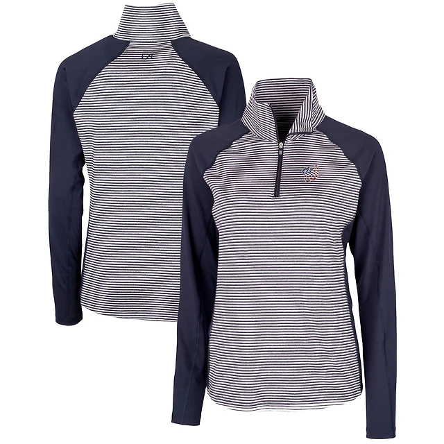 Cutter & Buck Men's Navy/White New York Yankees Virtue Eco Pique Micro Stripe Quarter-Zip Pullover Sweatshirt