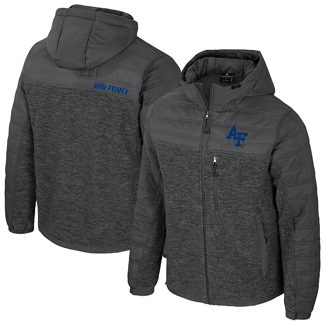 Men's Colosseum Charcoal Air Force Falcons Nightman Full-Zip Hoodie Puffer Jacket