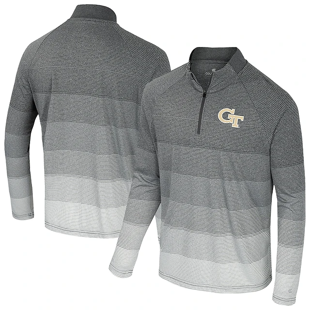 Men's Colosseum Gray Georgia Tech Yellow Jackets AI Striped Mesh Quarter-Zip Raglan Windshirt