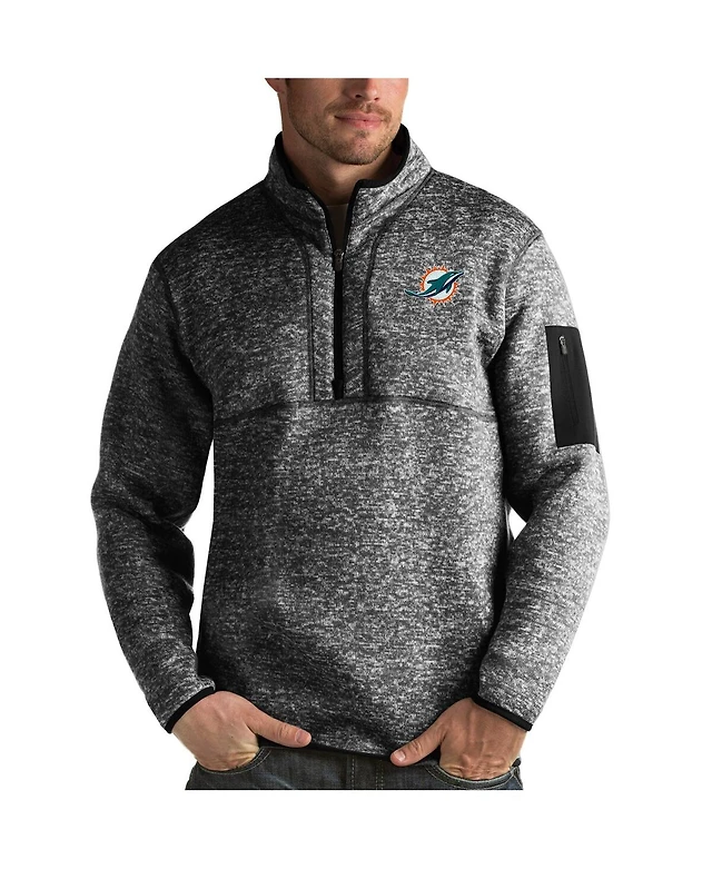 Antigua Men's Heather Black Miami Dolphins Fortune Quarter-Zip Pullover Jacket