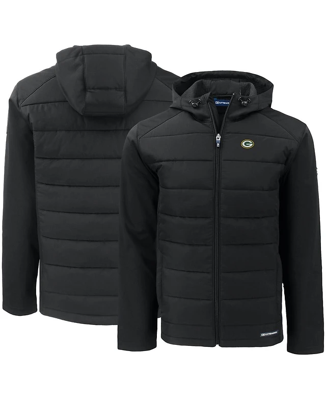 Cutter & Buck Men's Black Green Bay Packers Evoke PrimaLoft Hybrid Eco Softshell Full-Zip Hooded Jacket