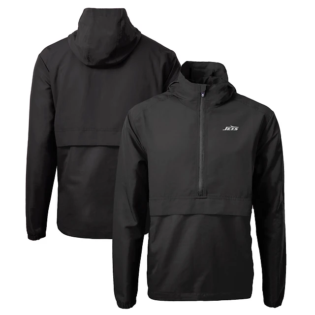 Men's Cutter & Buck Black New York Jets Monochromatic Logo Charter Eco Recycled Half-Zip Anorak Jacket