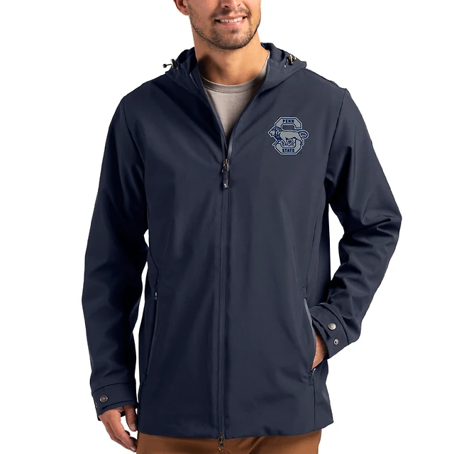 Men's Cutter & Buck Navy Penn State Nittany Lions Vault Logo Camano Everyday Stretch Water-Resistant Full-Zip Jacket