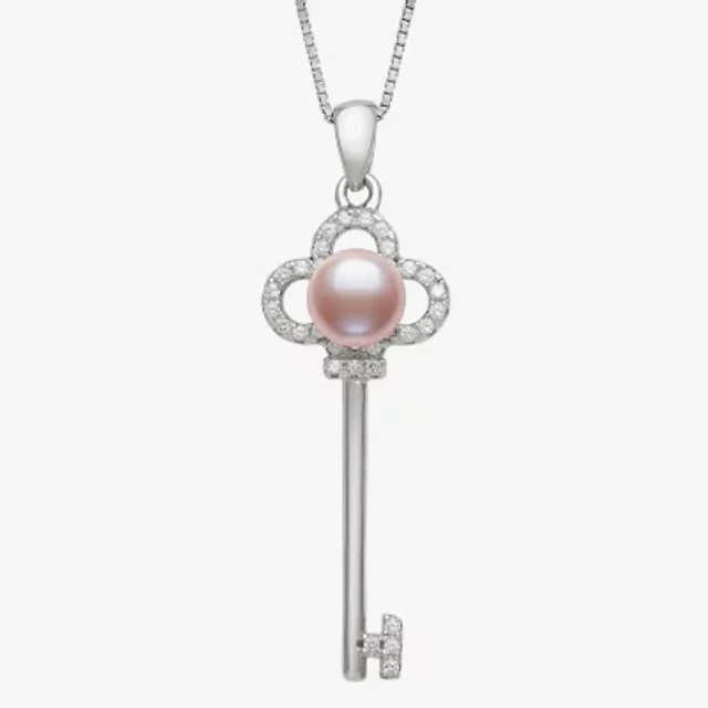 Macy's Freshwater Pearl (7mm) Diamond (1/10 ct. t.w.) Pendant Necklace in Sterling Silver