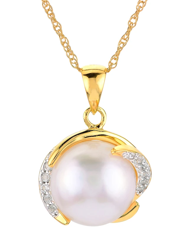 Belle de Mer Peacock Black Cultured Freshwater Pearl (10mm) & Cubic Zirconia 18" Pendant Necklace Sterling Silver (Also White Freshwate