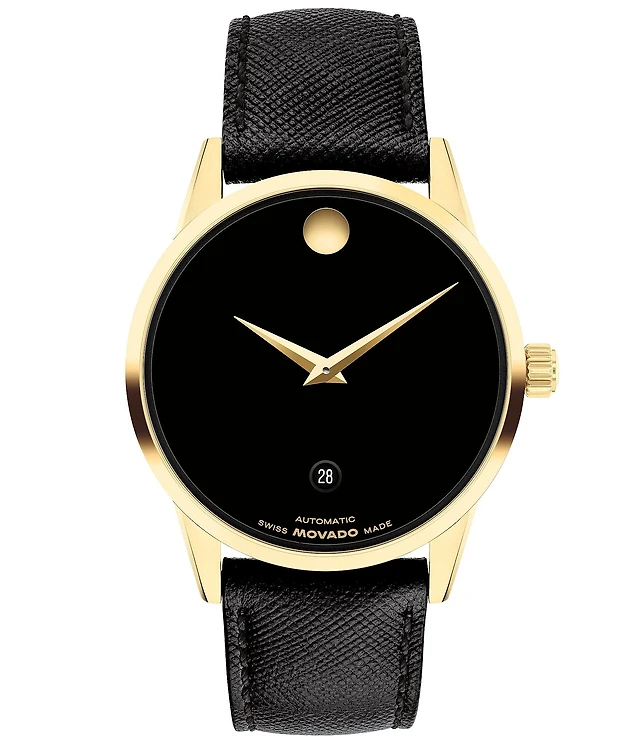 Movado Men's Heritage Black Genuine Leather Strap Watch 40mm