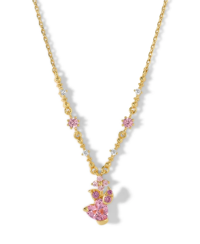 2028 Gold-Tone Crystal and Pink Porcelain Rose Simulated Pearl Necklace 17"