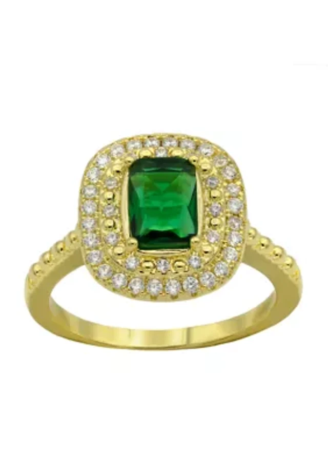 Lab Grown Silver Tone Emerald Fuchsia Crystal with Clear Cubic Zirconia Baguette Ring