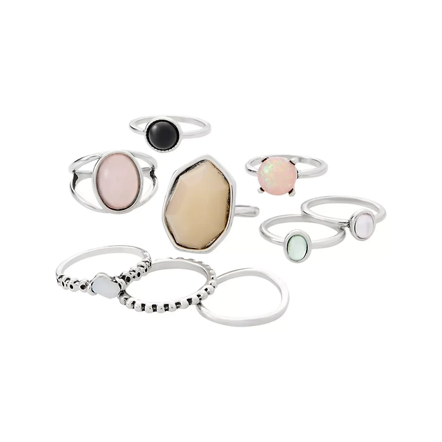 Multi-Pack Black and Pink Moonstone Rings - 9 Pack