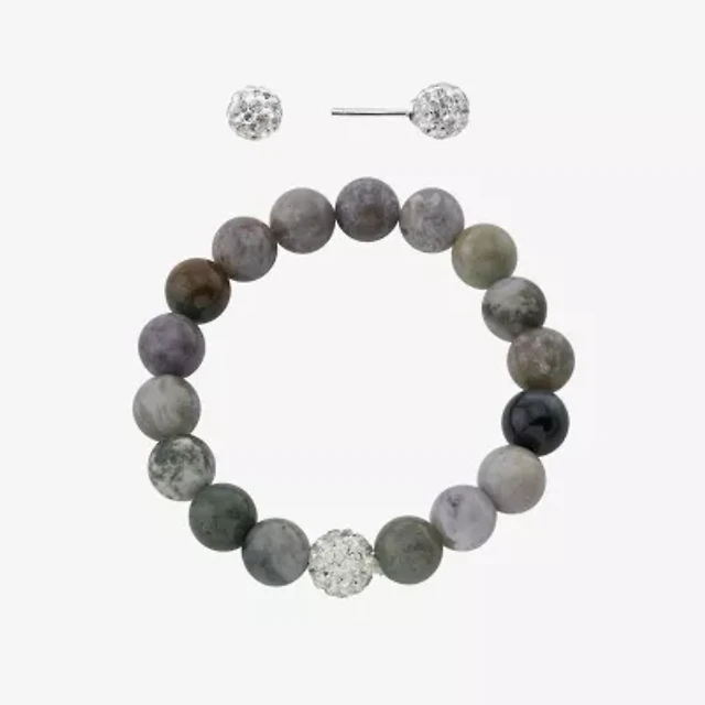 Sparkle Allure Stretch Bracelet & Stud Earring Womens Multi Color Jasper Pure Silver Over Brass 2-pc. Jewelry Set