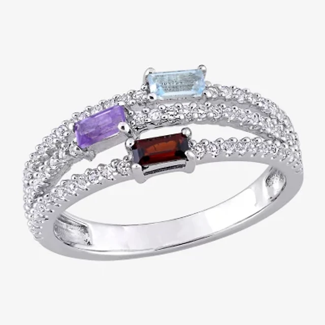 Womens Genuine Multi Color Sterling Silver Stackable Ring