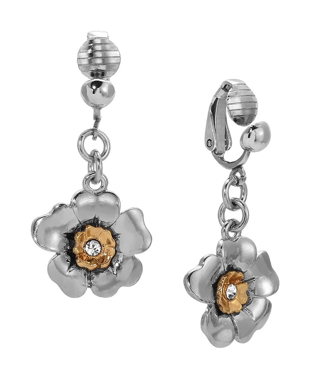 2028 Silver Tone Imitation Pearl and Crystal Clip Drop Earrings