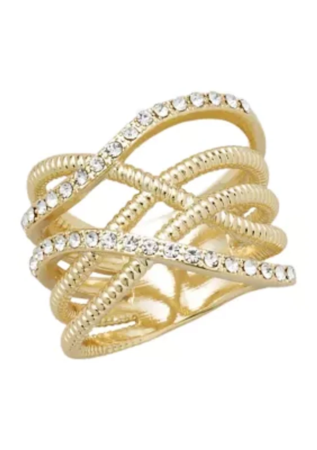 DKNY Women's Crystal Dial Crystal Accented Dial Gold-Tone Stainless Steel Bracelet Watch 23 x 30mm 30M