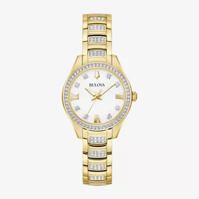 Bulova Crystal Womens Crystal Accent Gold Tone Stainless Steel Bracelet Watch 98l306
