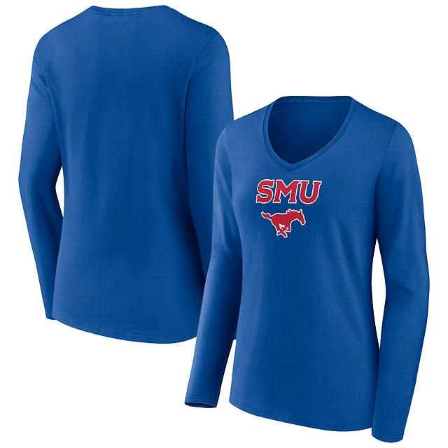 Women's Royal SMU Mustangs Campus Long Sleeve V-Neck T-Shirt
