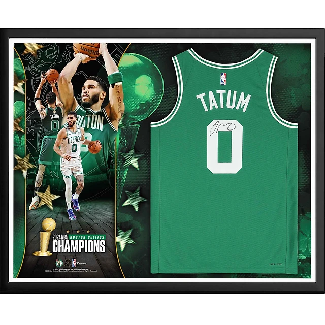 Jayson Tatum Boston Celtics Autographed Framed 2024 NBA Finals Champions Kelly Green Nike Icon Edition Swingman Jersey Collage