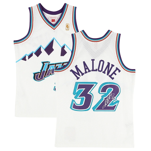 Karl Malone Utah Jazz Autographed Mitchell & Ness White 1996 Swingman Jersey