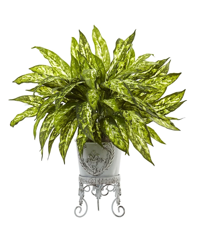 Nearly Natural Garden Croton Artificial Plant in Ceramic Planter, Real Touch