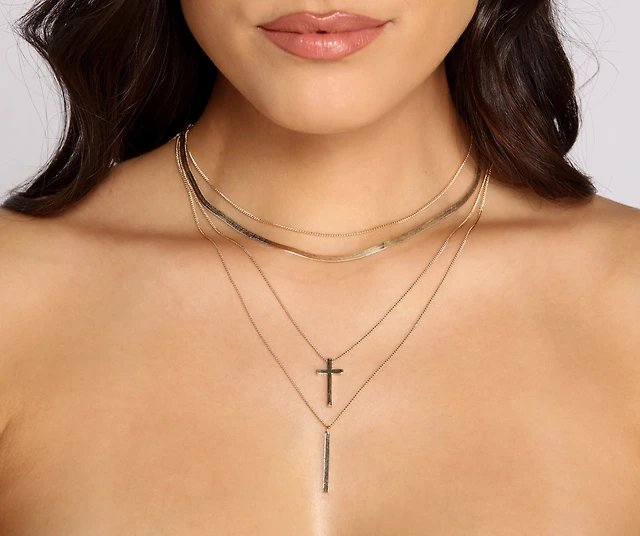 Vince Camuto Layered Necklace Set with Burgandy Stone Crystal Charm