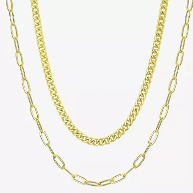 Mens 18K Gold over Stainless Steel 24 Inch Chain Necklace