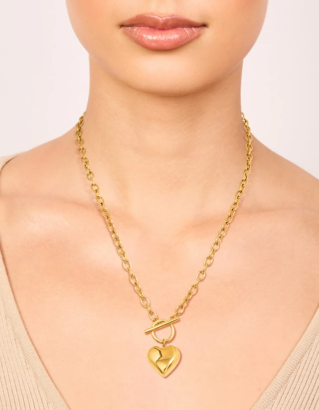 Waterproof Gold Plated Stainless Steel Chunky Heart Pendant Necklace