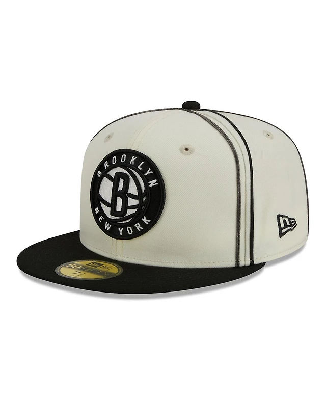 Men's New Era Cream, Black Brooklyn Nets Piping 2-Tone 59FIFTY Fitted Hat