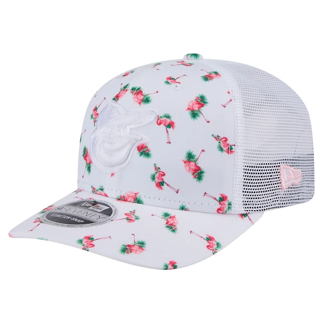 Men's New Era White Baltimore Orioles Flamingo Mesh Back 9SEVENTY Stretch-Snap Hat