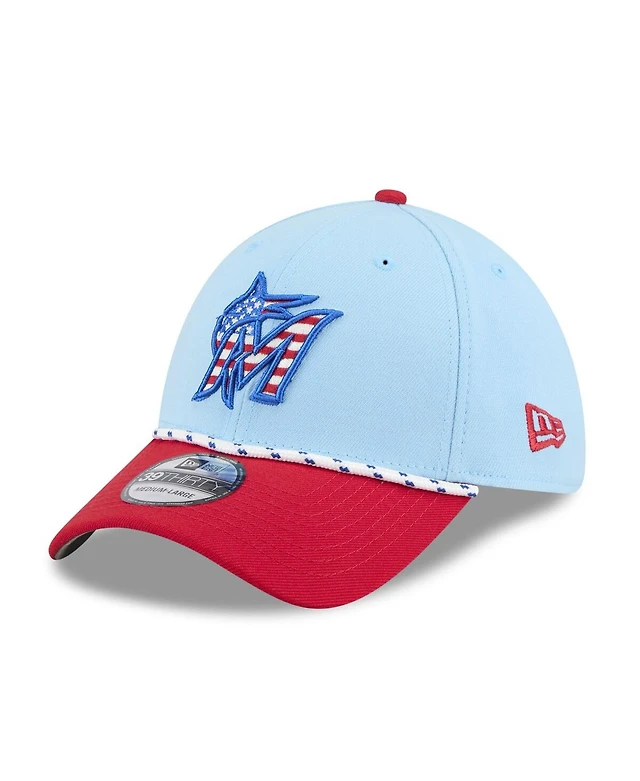 New Era Men's Light Blue/Red Miami Marlins 2025 Fourth of July Low Profile 59FIFTY Fitted Hat