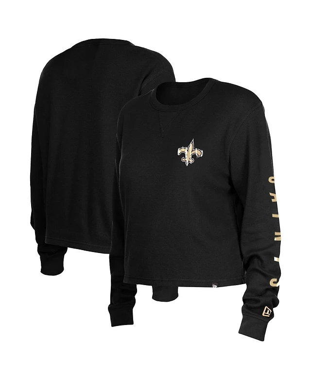 Women's New Era Black Orleans Saints Thermal Crop Long Sleeve T-shirt