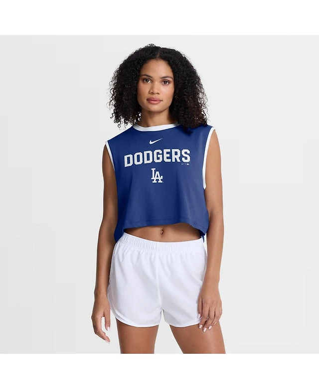 Nike Women's Royal Los Angeles Dodgers Primetime Loose Dri-fit Cropped Tank Top
