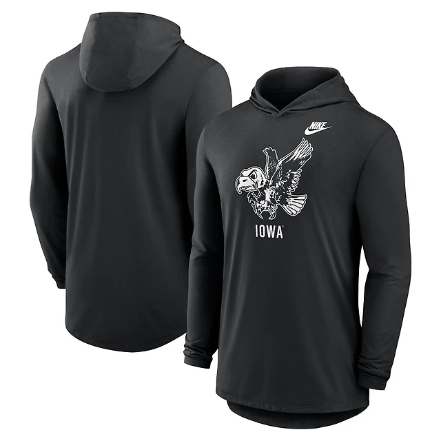 Men's Nike Black Iowa Hawkeyes Primetime Tri-Blend Dri-FIT Long Sleeve Hoodie T-Shirt