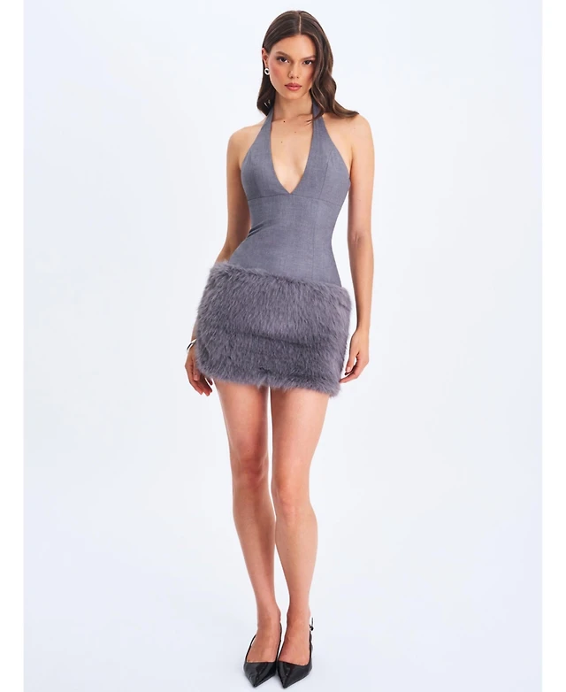 Miss Circle Women's Sariah Tan Suede Cheetah Low-Waisted Micro Skirt