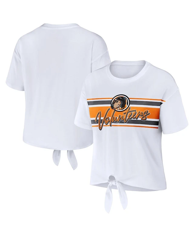Women's Wear by Erin Andrews White Florida Gators Striped Front Knot Cropped T-shirt