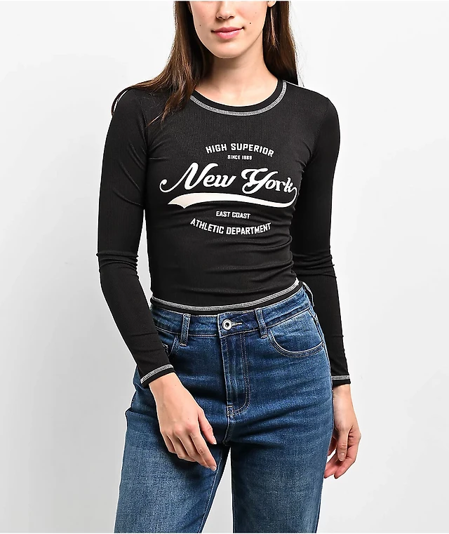 Cross Colours NY Graffiti Black Crop Long Sleeve T-Shirt