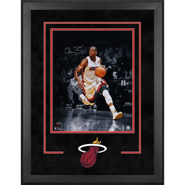 Dwyane Wade Miami Heat Autographed Deluxe Framed 16" x 20" Dribbling in White for Floating Hall of Fame Collage Photograph