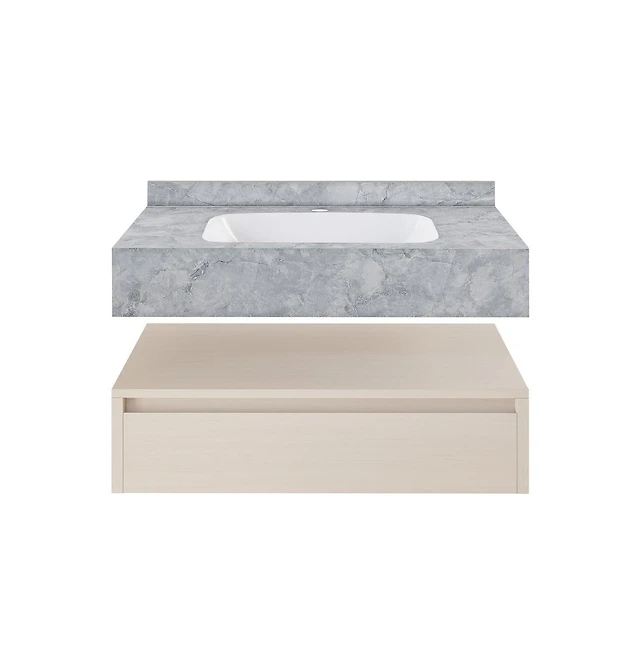 Swiss Madison Avancer 36" Wall-Mounted Bathroom Vanity in White Oak with White Marble Sink Top