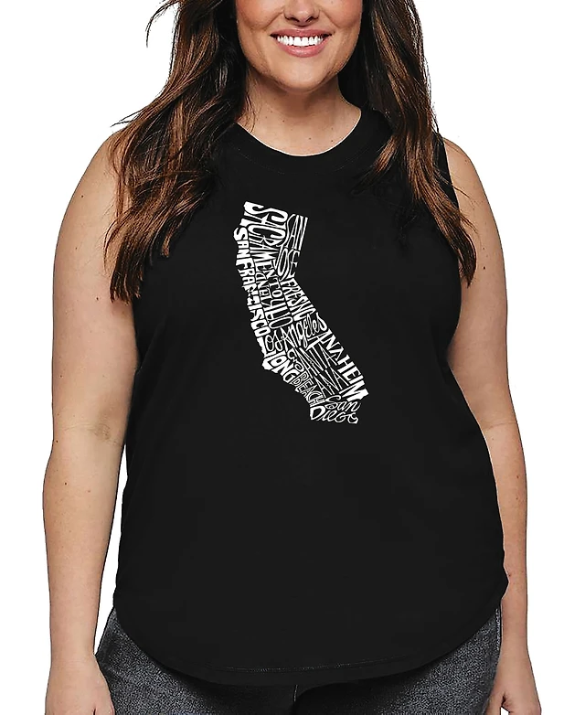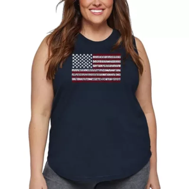 Women's Plus Word Art Tank Top - 50 States USA Flag