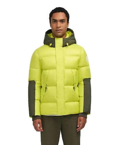 Pajar Men's Nuray Mixed Media Color Block Puffer with Fixed Hood