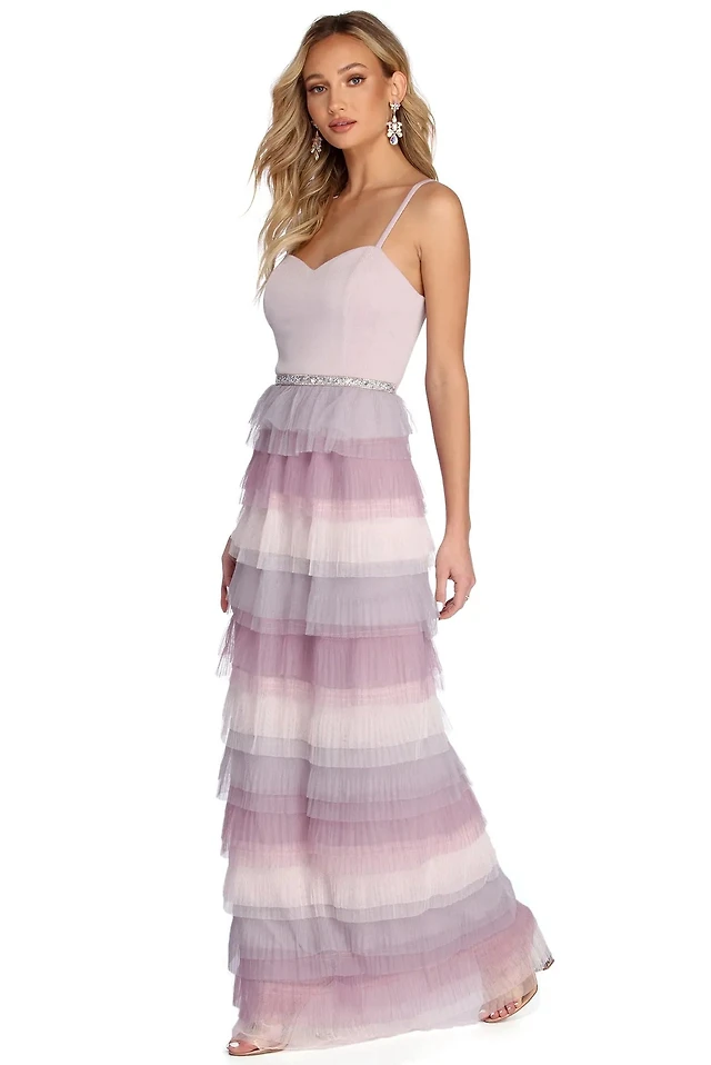 Karlie Formal Ruffled Rhinestone Dress