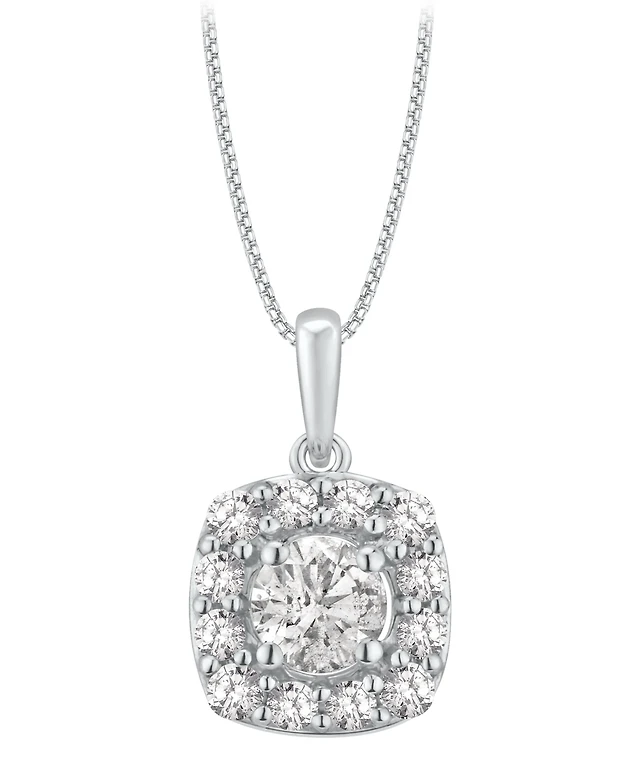 Macy's Round (0.53 ct. t.w.) and Baguette (0.47 ct. t.w.) Diamond Pendant Necklace in 14K White Gold