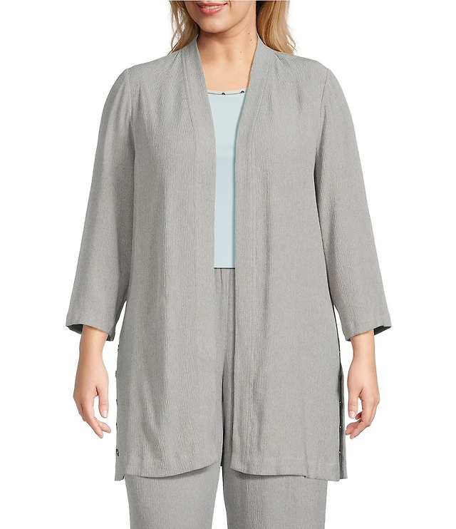 Kasper Plus Size Stretch Crepe Long Sleeve Open-Front Drape Jacket