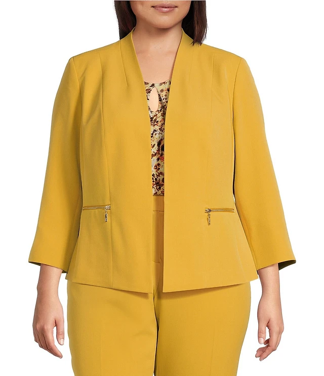 Ming Wang Plus Size Deco Crepe 3/4 Sleeve Zip Front Jacket