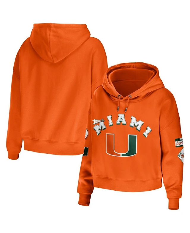 Women's Wear by Erin Andrews Orange Miami Hurricanes Mixed Media Cropped Pullover Hoodie