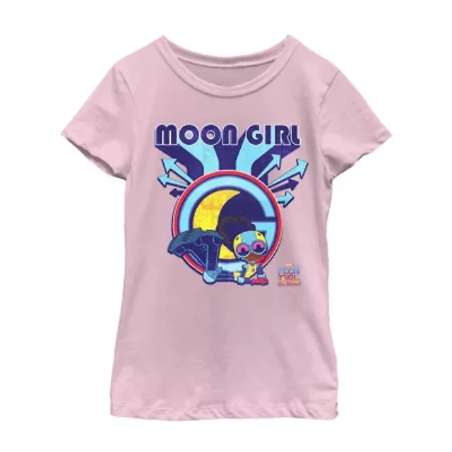 Little & Big Kid Girls Crew Neck Short Sleeve Regular Fit Marvel Moon Girl Graphic T-Shirt