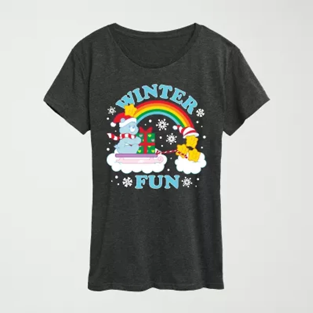 Winter Fun Womens Crew Neck Short Sleeve Regular Fit Care Bears Graphic T-Shirt