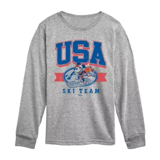 Disney Collection Little & Big Kid Boys Crew Neck Long Sleeve Regular Fit Mickey Mouse Graphic T-Shirt