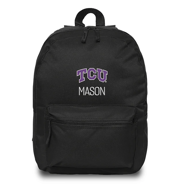 Chad & Jake Black TCU Horned Frogs Mascot Personalized Backpack