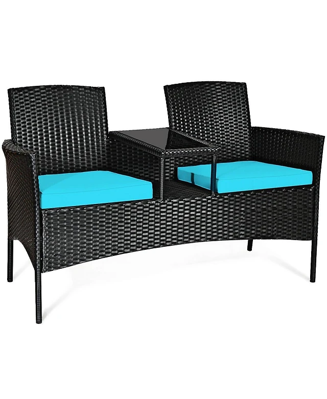 Sugift Wicker Patio Conversation Furniture Set with Removable Cushions and Table