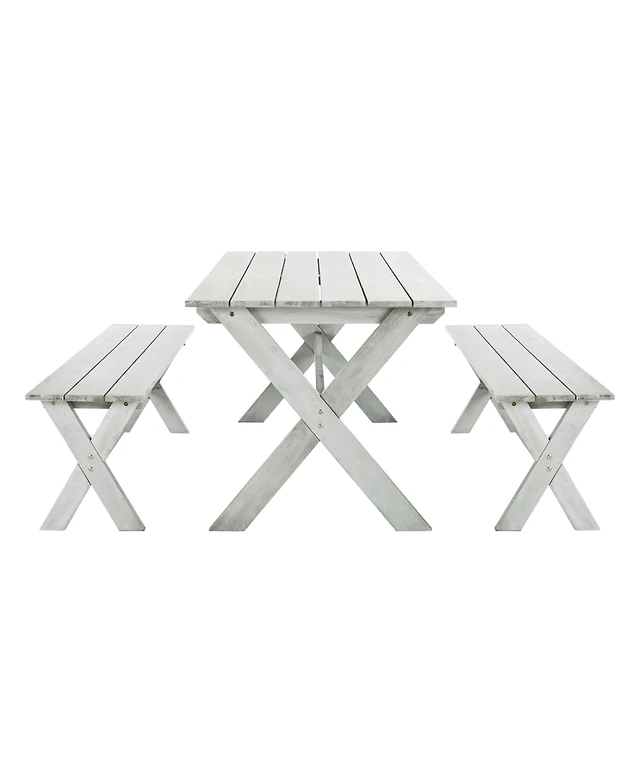 3 in 1 Patio Table Chairs Set Solid Wood Garden Furniture