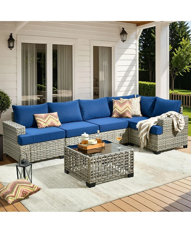Flynama 7 Piece Pe Rattan Wicker Outdoor Garden Patio Furniture Set Cushioned Sofa and Coffee Table